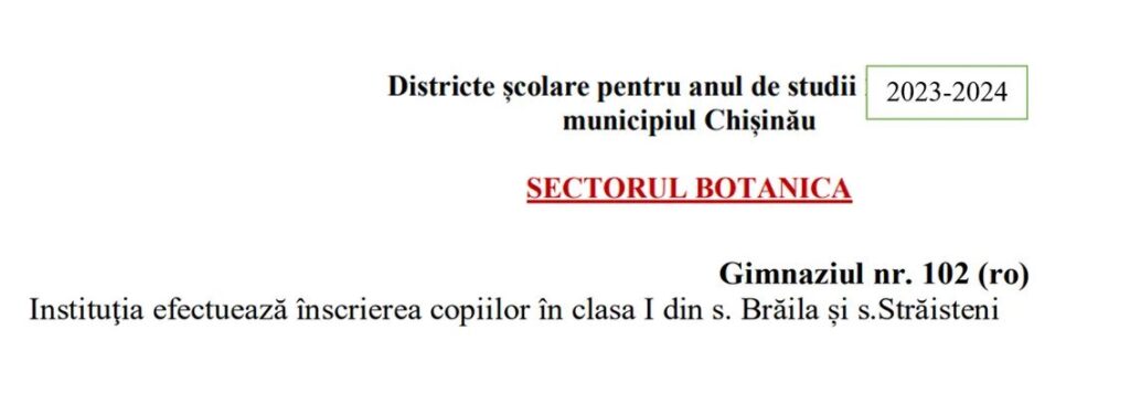 ✅Districtul școlar al Gimnaziului nr.102.
