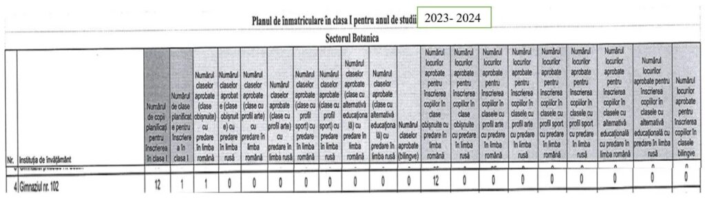 ✅Planul de înmatriculare în clasa I pentru anul de studii 2023-2024;